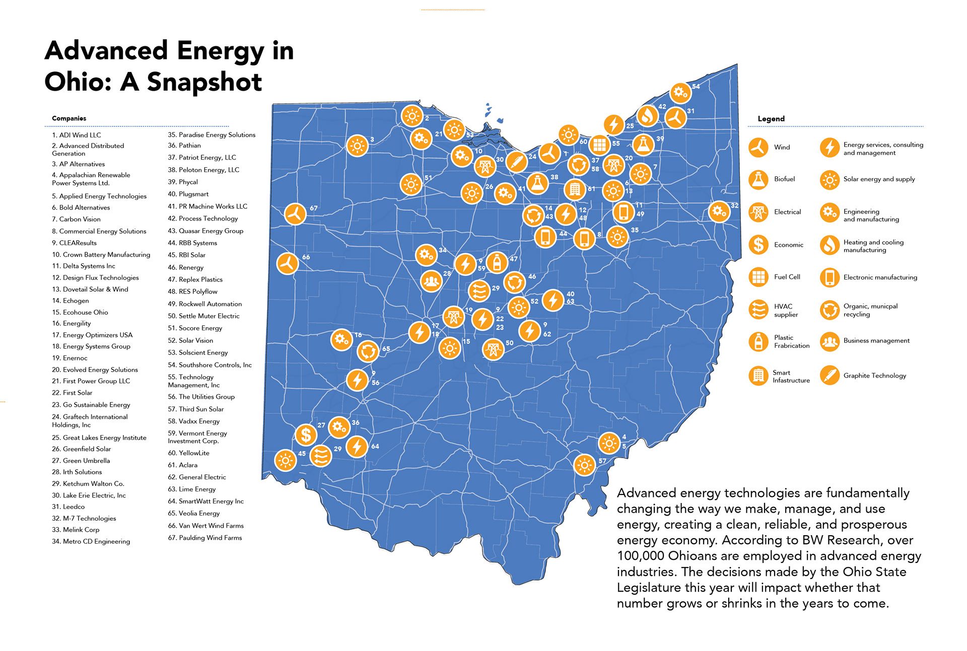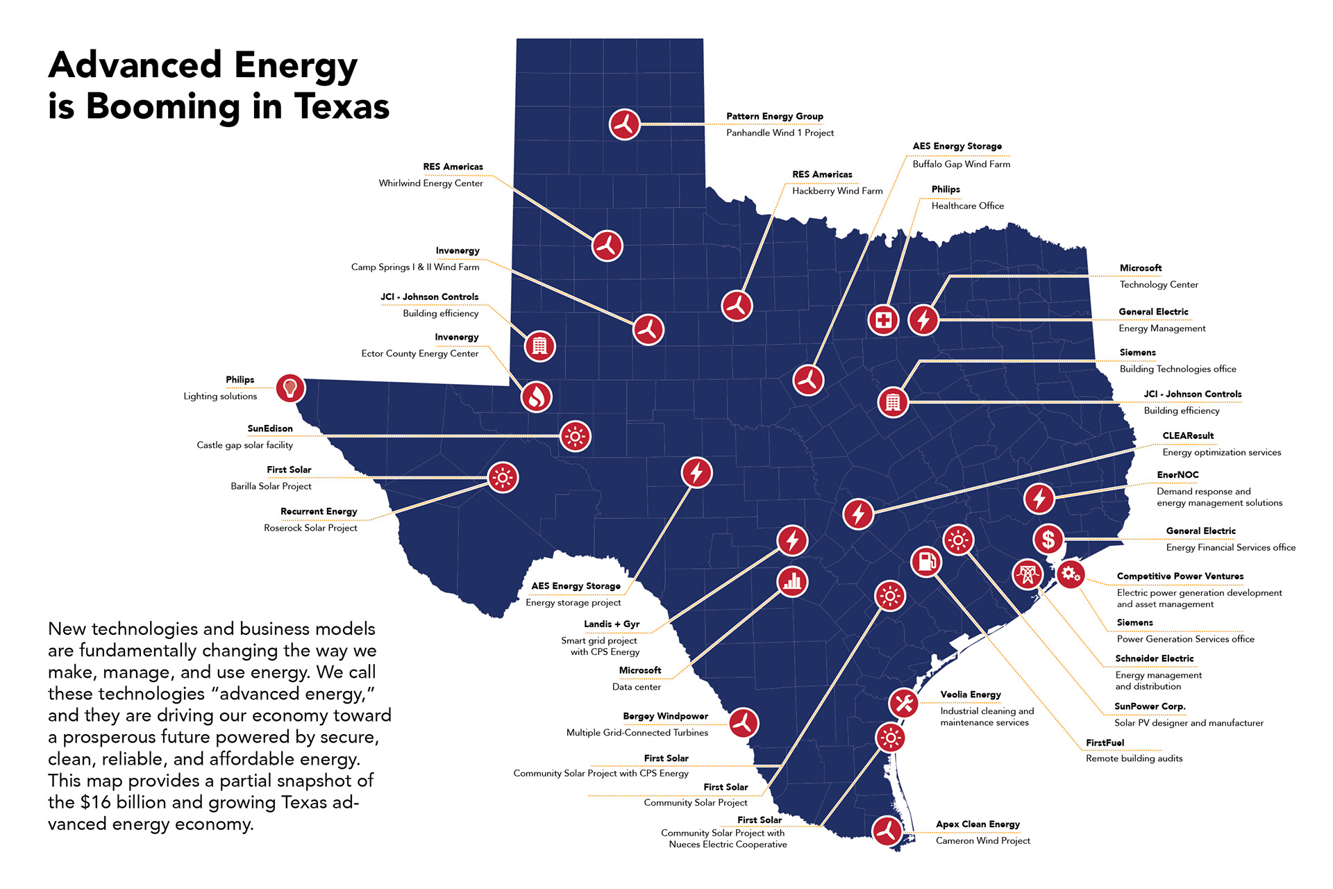 An infographic of different states with advanced energy.
