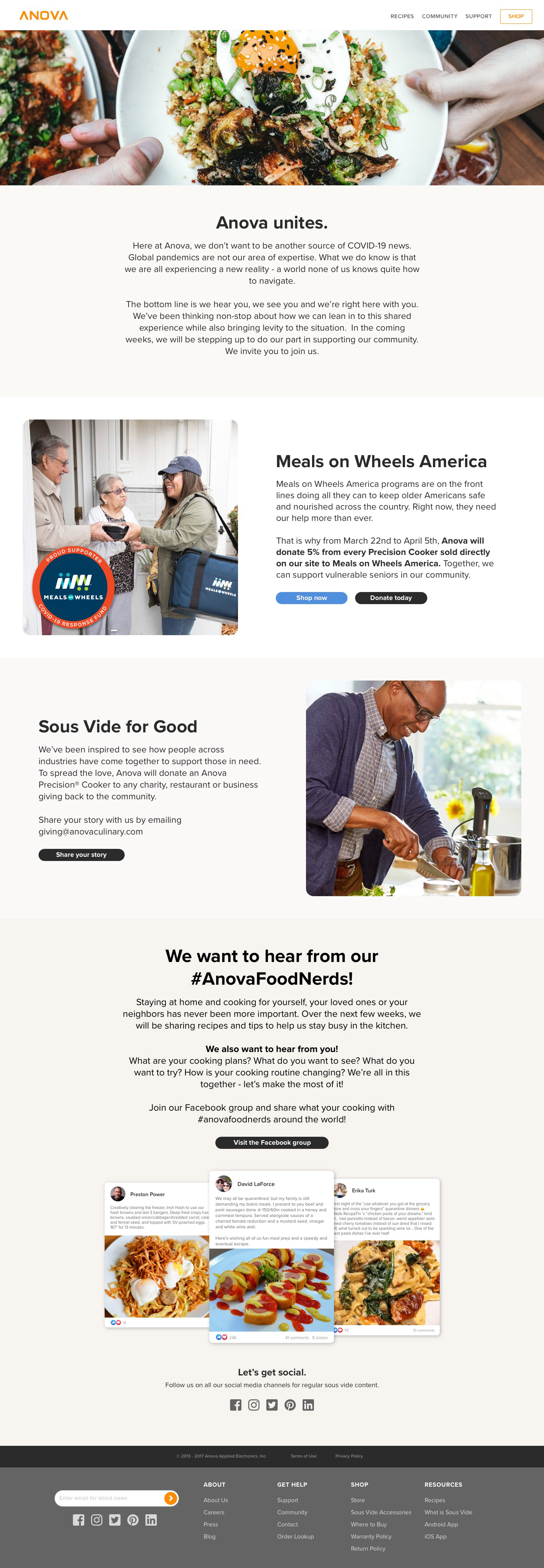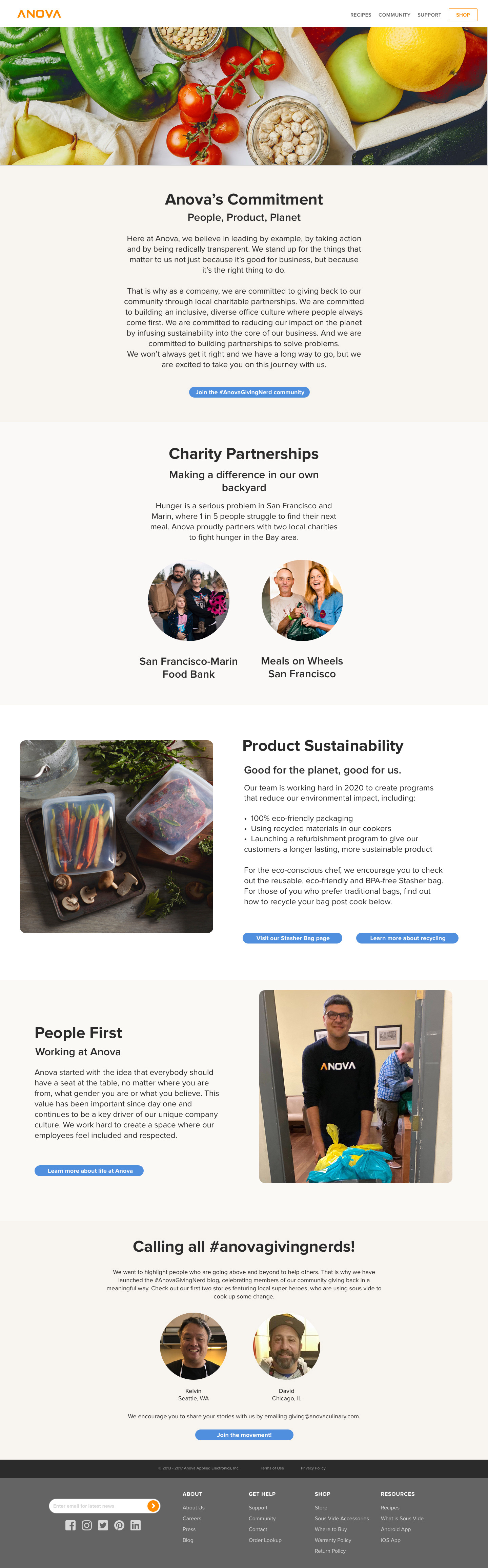 These pages have the Covid-19 response page and partnerships with SF Marin Food Bank and Meals on Wheels. As well as how the products are sustainable.
