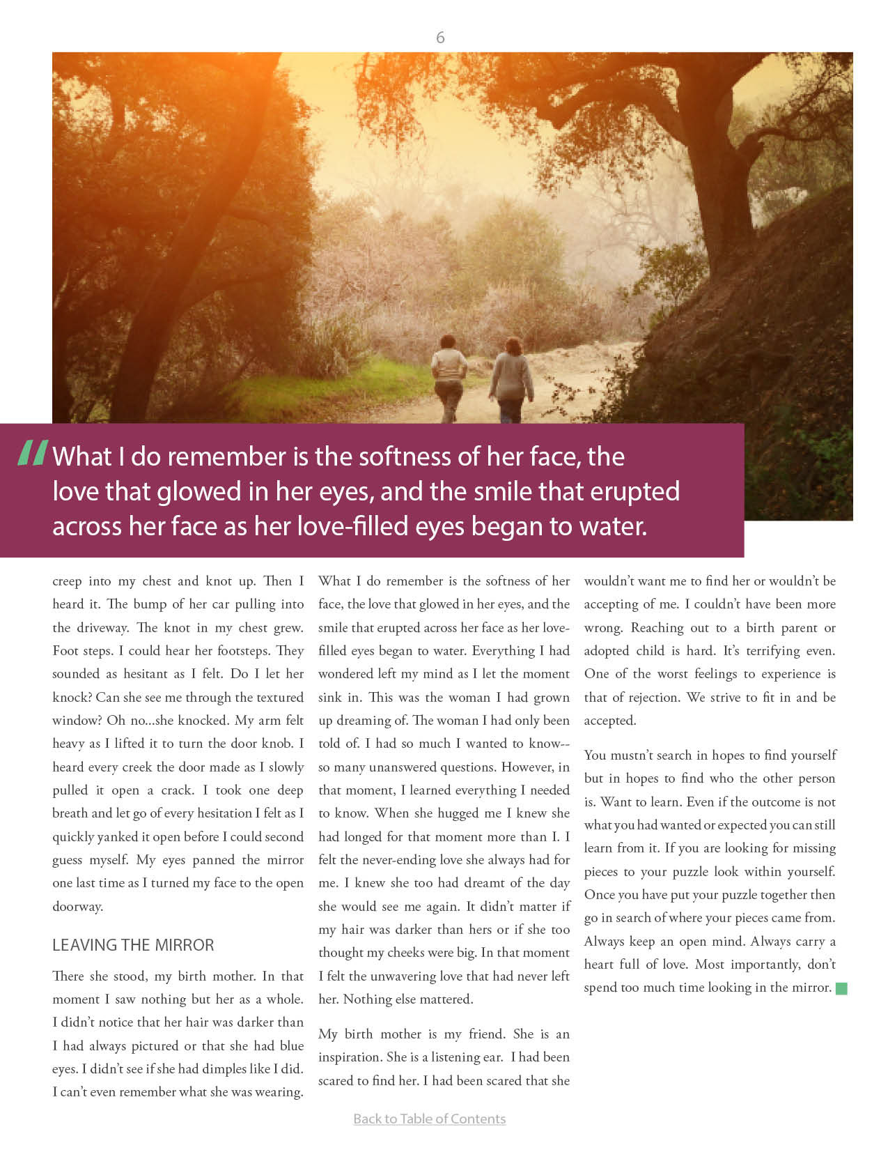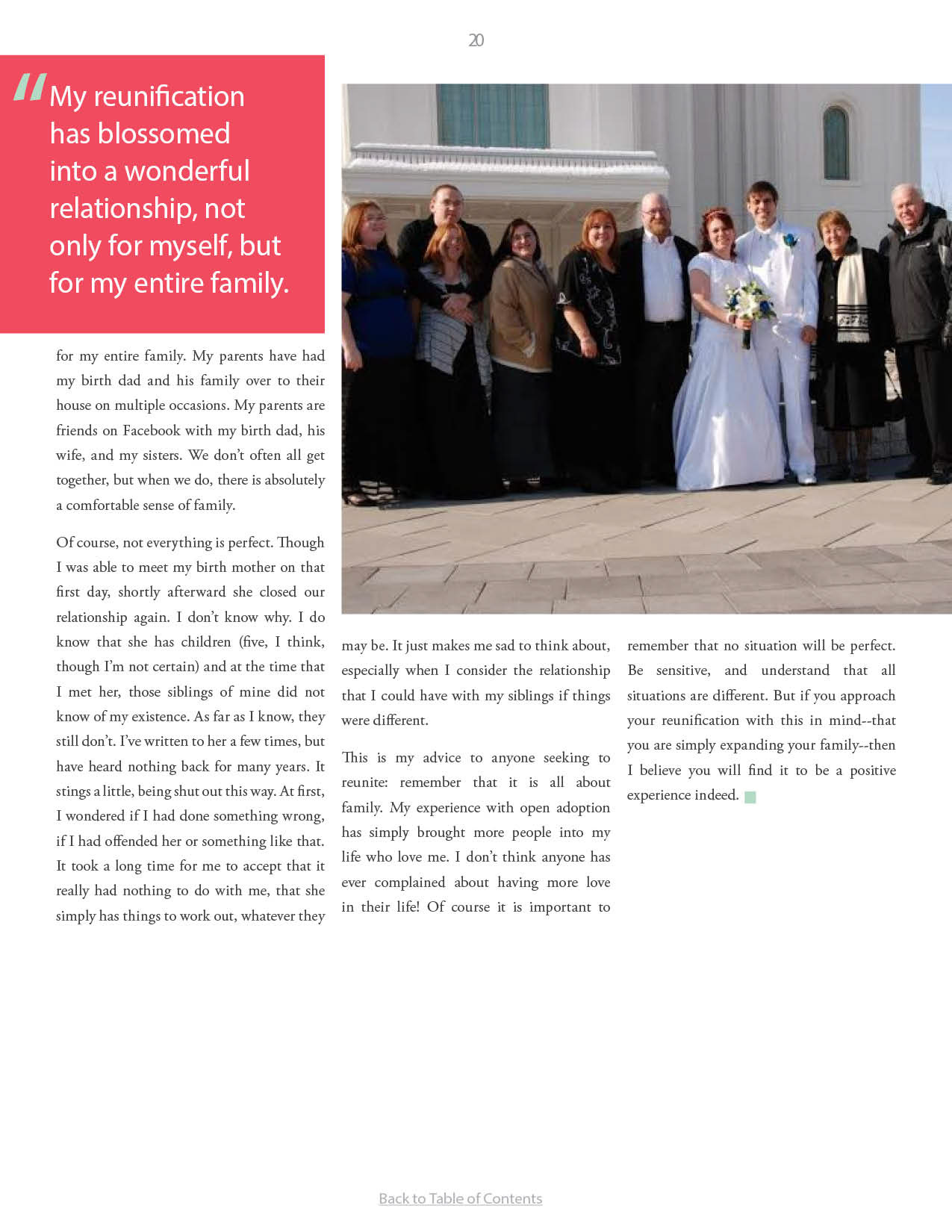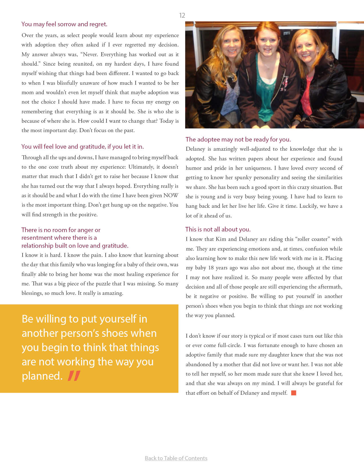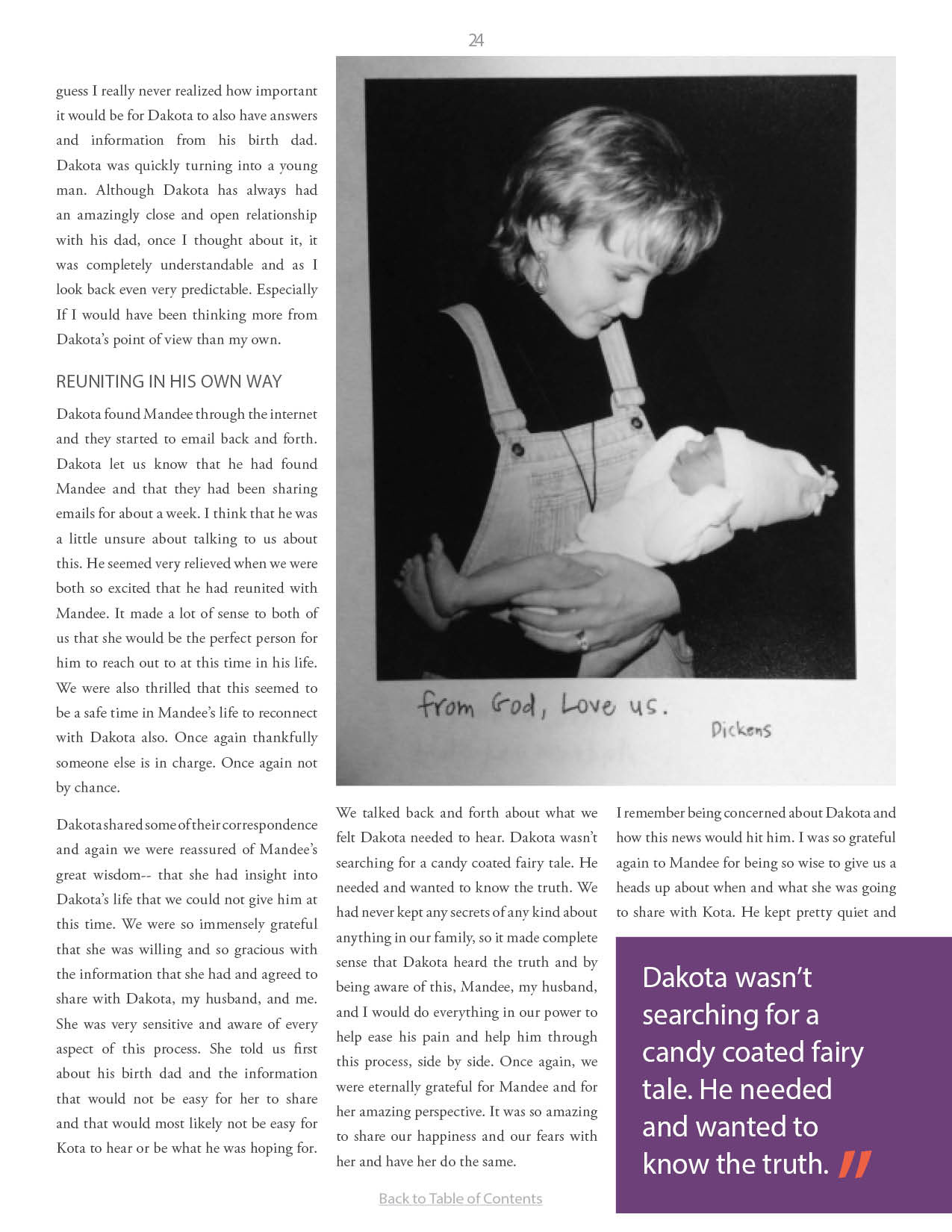 A compilation of stories about people finding and searching for love ones through adoption.