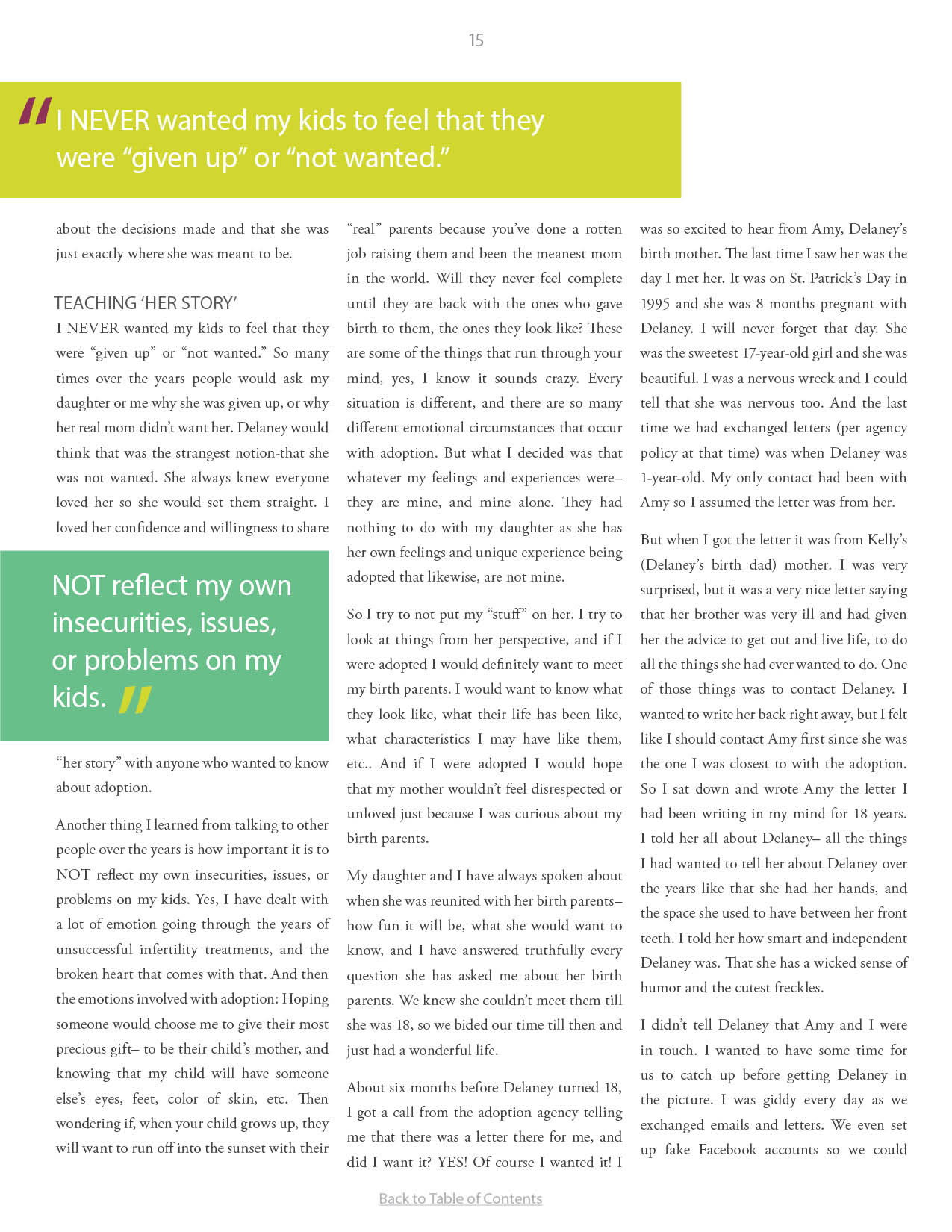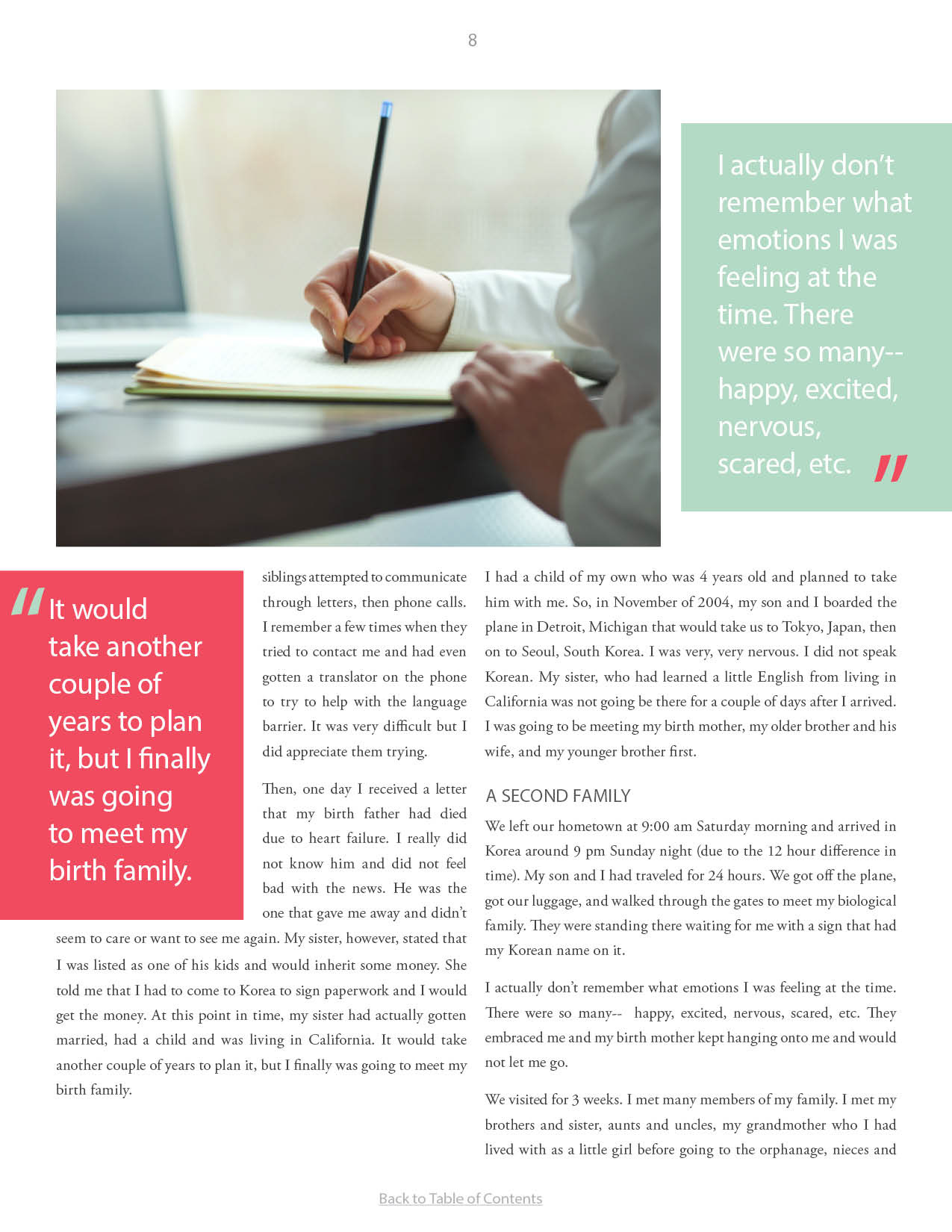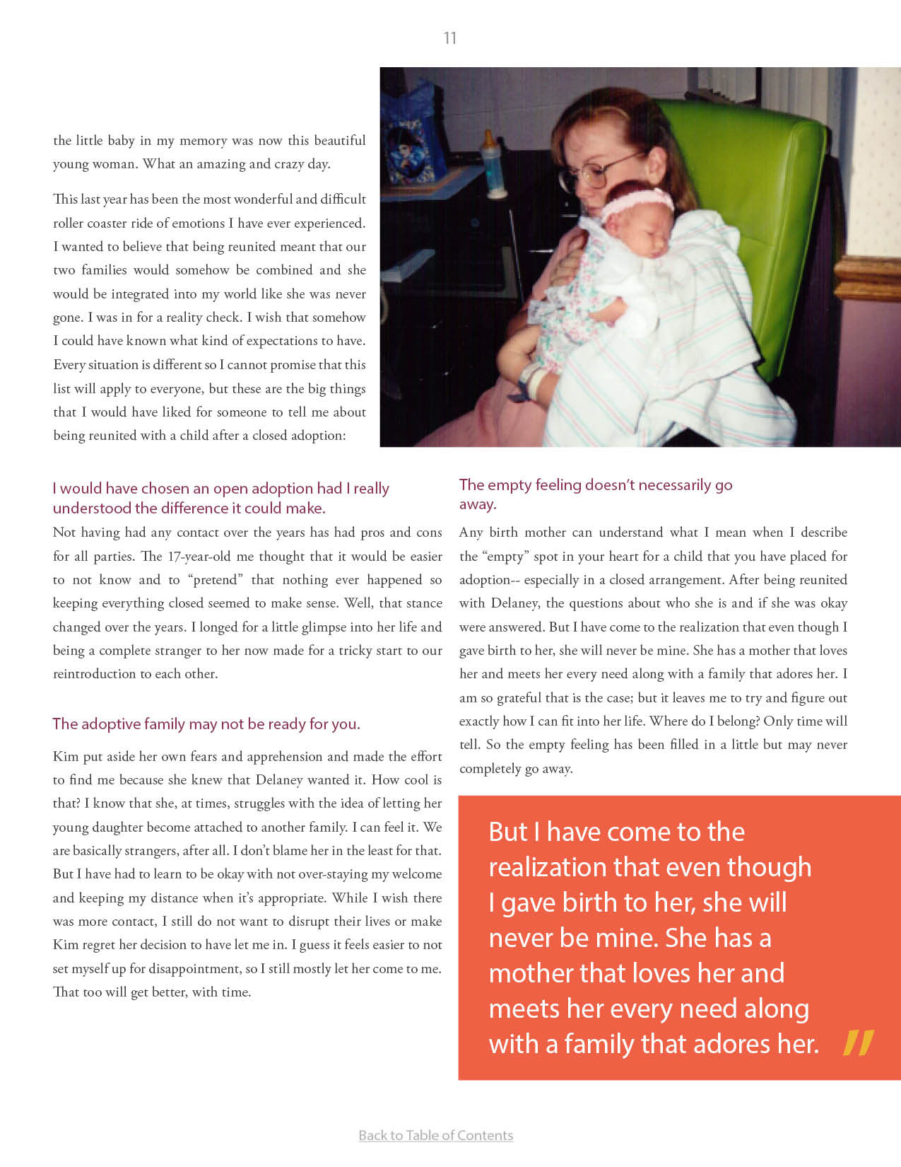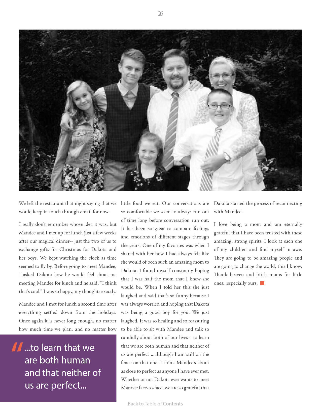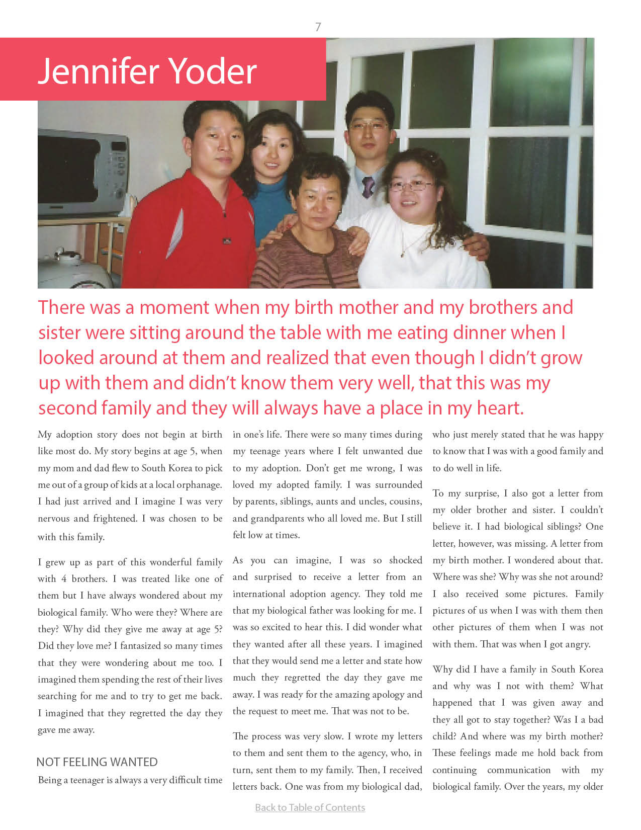 A compilation of stories about people finding and searching for love ones through adoption.