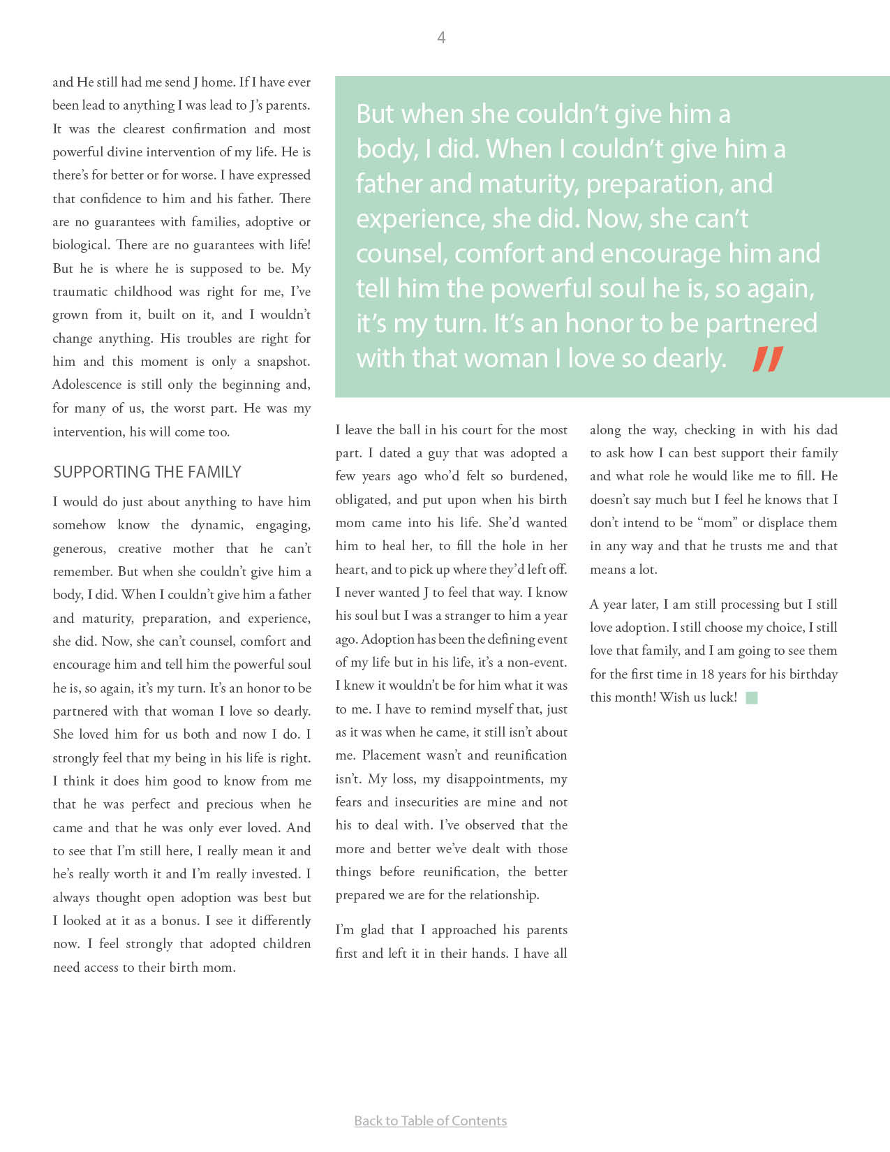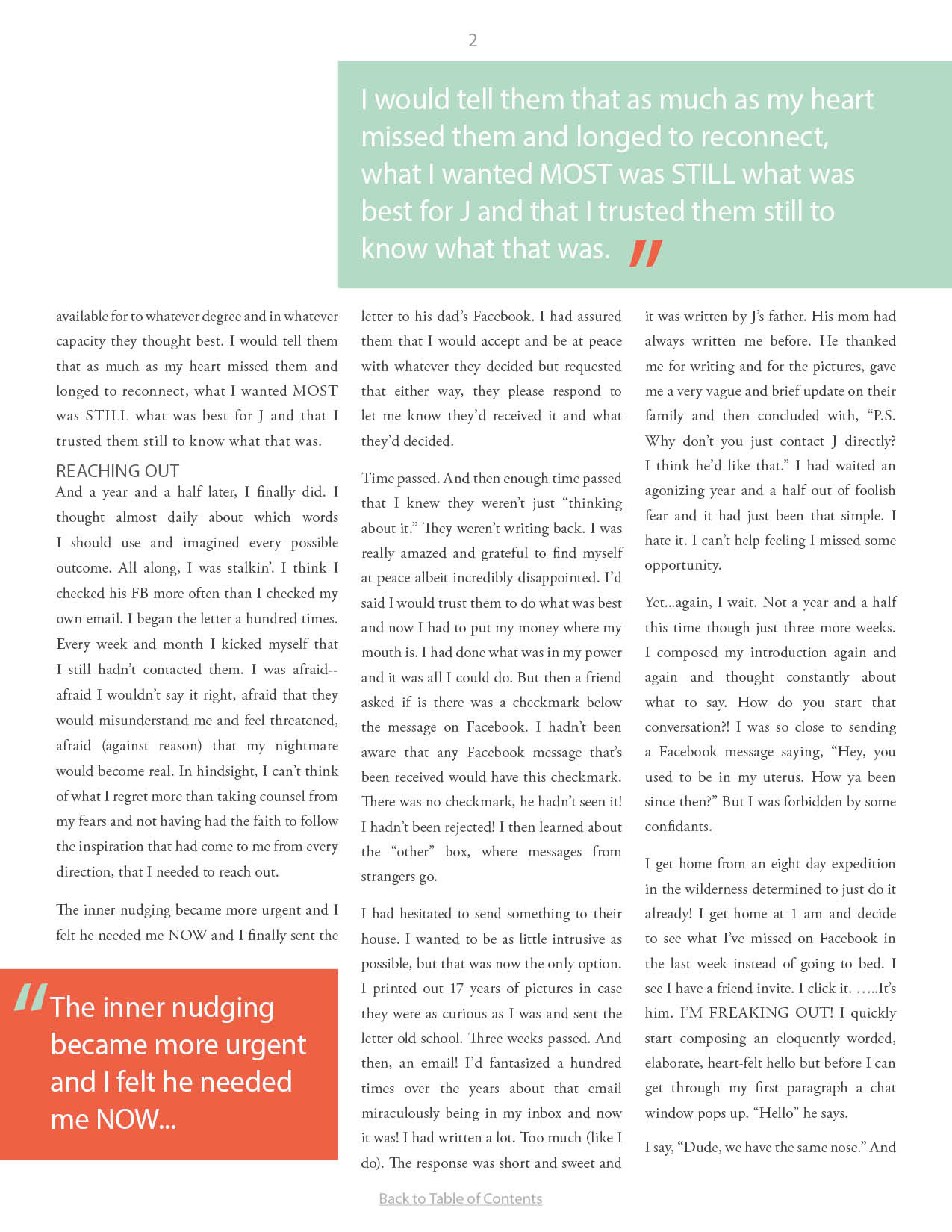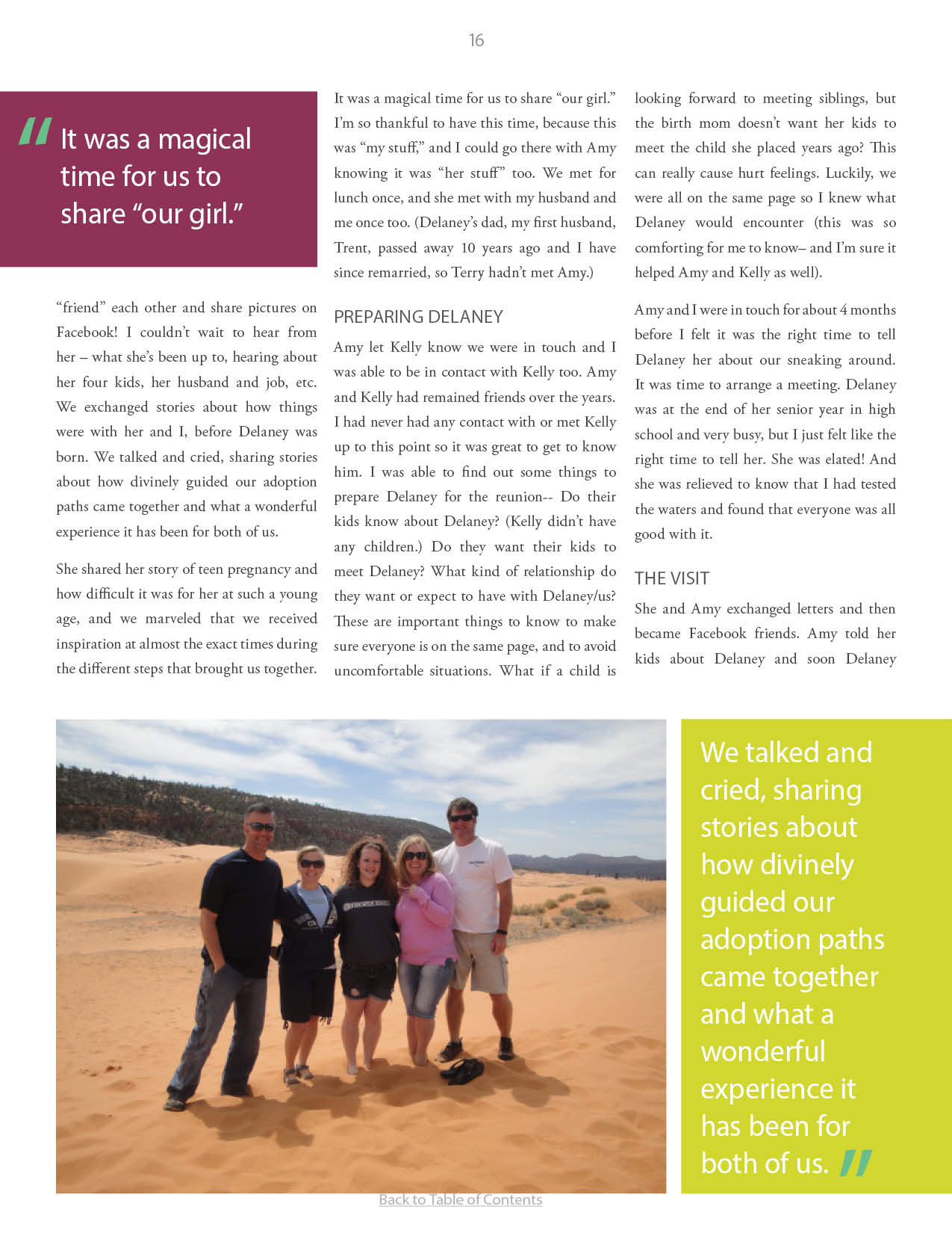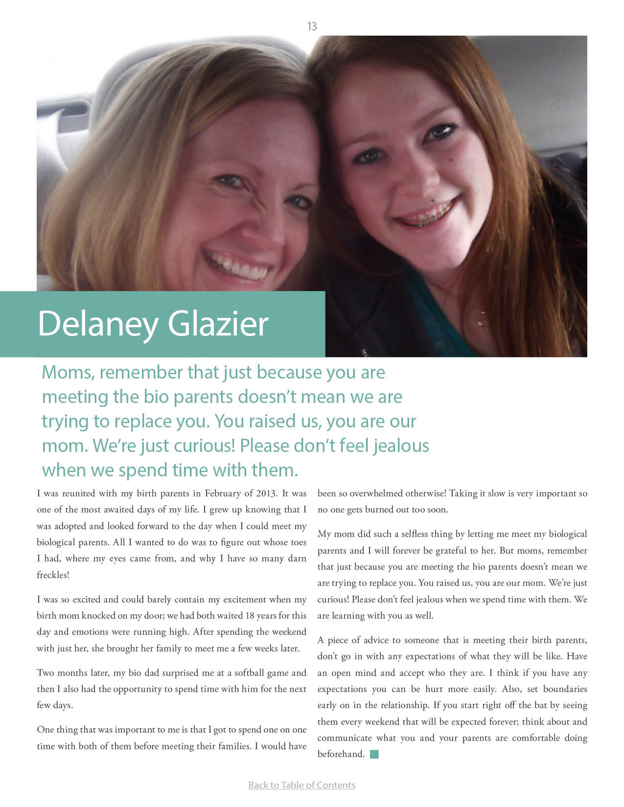 A compilation of stories about people finding and searching for love ones through adoption.